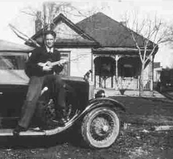 Lee in front of his parents' home at 3313 So. 11th East in Salt Lake City.