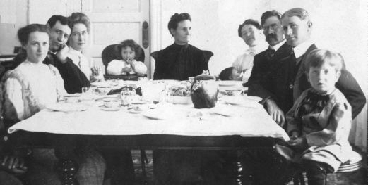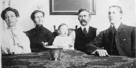 Ruth Snow, Ann Alger Price, Bus Worsley (on lap), Eva Price Worsley, Jode Price, Claude Price, Claude Snow. |