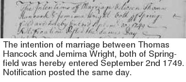 Jemima Wright Hancock was said to be the smallest woman in stature in the area where she lived. She was about four feet tall, the same height as her son when was six and half years old. When he was grown to manhood the remark was often made, "Although she was small, she was the mother of a good man, and a stout one." Of her eight children, only one son survived. The two older sons were both killed fighting the Revolutionary War, but her youngest son was spared because he was too young to join the army. That son Thomas, Jr., wax 5 foot 9 inches tall and was very large around the chest. Jemima lived with him and his wife after her husband's death.