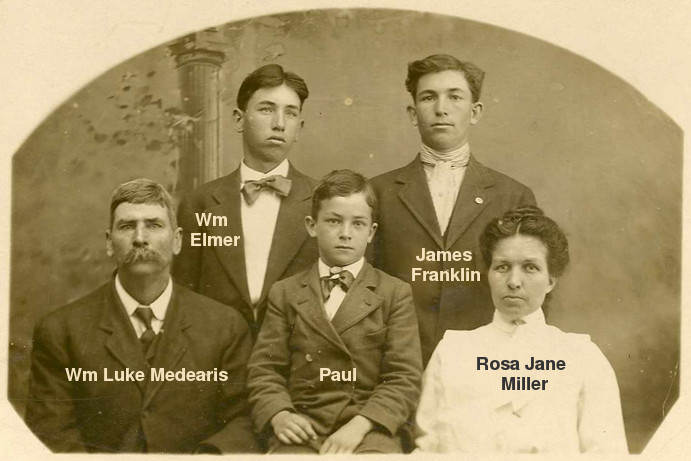 Francis Hugh Medearis_____William Luke Medearis__| 1821-1900 | b.11Jan1862 TX | | m.20May1886 TX |_Mary Frances Kutch_____