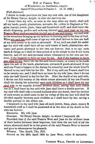 _Thomas West, 2nd Baron Del___Capt. Francis West____________| 1556-1601 | b.28Oct1586 Salisbury Eng | _Francis West_| m. 1626 VA |_Lady Anne Knollys__________