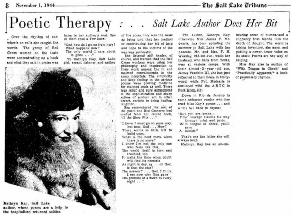 Poetic Therapy ... Salt Lake Author Does Her Bit (1941)