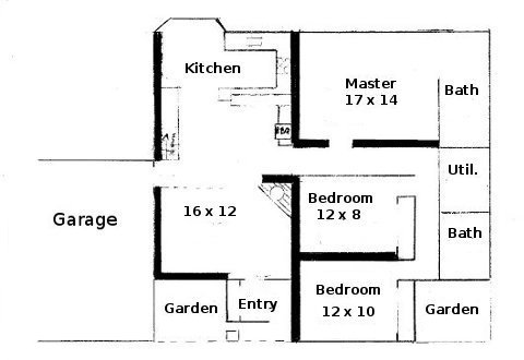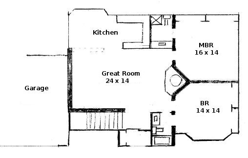 A Pratt house plan (1384 sq. ft., about )