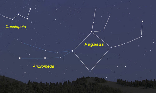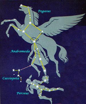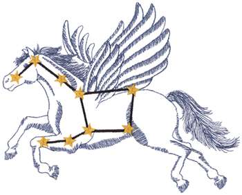 The day on which Elijah returned was 22 Psc, the Last Day of the week of the star Passover. It is also represented by a star in Pegasus.[14] The Greeks said it was located at the navel of the horse. The name of the star is Alpheratz which is from the Arabic for "Horse's Navel". That location of the star is near the reproductive area and may have everything to do with offspring. With that understanding, that star is a perfect one to have on the day on which Elijah, who ascended to heaven in a chariot of fire, returned to restore covenant power of the fathers and the authority to seal the children to their fathers. A possible name for this star in this context is "Sire". Figure 6 shows the positions of both the star in the wing and at the navel.