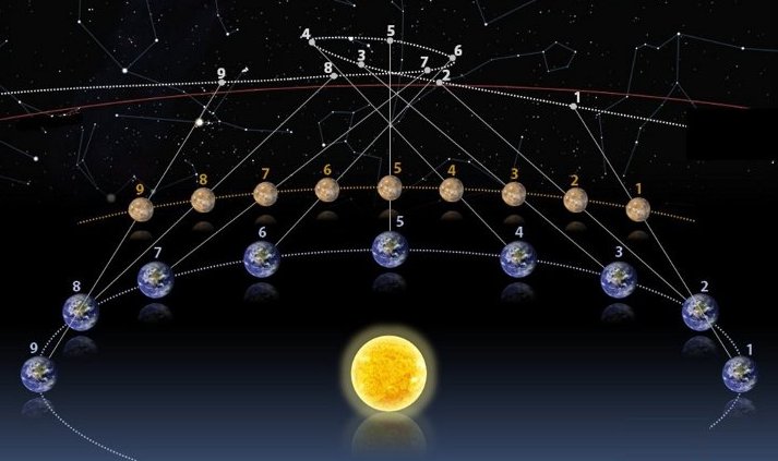 The planets Venus and Mercury both have their own sacred calendar which keeps track of where they are in the heavens as seen from the earth. Our Gregorian Calendar keeps track of the sun's seasons so that we know when to plant our garden. The Hebrew Calendar keeps track of both sun and moon so that each month starts near a new moon and each year starts near the first day of spring. Similarly, the Venus and Mercury calendars keep track of when each rises as an evening star (birth), sets as evening star (death) and then rises as a morning star (resurrection). Each has nine such phases that are all multiples of thirteen days. Each thirteen day period is represented as a tooth on the gears in Figure 2.