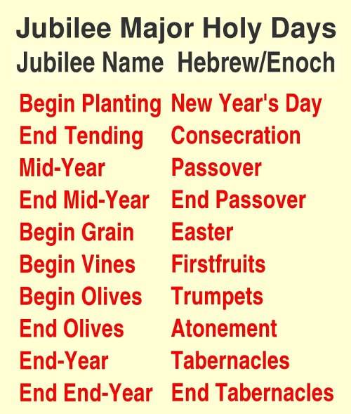 Most former results have remained unchanged because most years are not near the extremes where leap years are needed. The few dates which have been changed have only been moved by one week, but that difference can be meaningful. It is useful to note that all ten major holy days on the Hebrew Calendar have an equivalent sacred day on the Jubilee Calendar. In this article the more commonly recognized Hebrew holy day names are also used for the day name (See Figure 5). For references for how the following event dates were originally derived, such are provided in my Religious Chronology on my website.