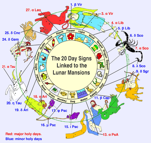 Thus we see that most of the twenty day signs of the veintena have a clear correspondence with 20 of the 28 lunar mansions and in the same order (see Table 2 for name comparisons). This clearly testifies of design and points the way to many layers of new meanings.