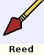 13. Reed. The day sign Reed is a continuation of the grass growing from the skull, being the next rung on the ladder. The reed was the kind used for making arrows; the Mixtecs used an arrow for this glyph. The reed is also suggestive of fully grown grass. This glyph is identified in my work as representing "Resurrection".
