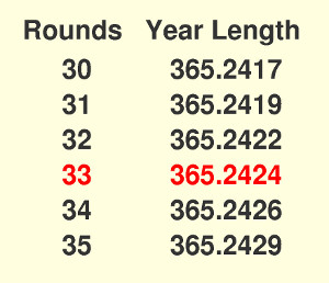Here the claim is made that the Creation occurred in the year 1 FLINT, which is important in itself. Second, it is easily noticed that 1,716 years is 33 rounds of 52 years, which would put the Great Flood near the end of the Age, with the next Age also beginning in 1 FLINT. So the question is, why 33 rounds for the length of an Age?