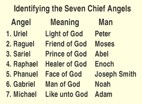 This section originally was going to simply go through the list of seven angels to speculate what other men might have been a separate mortal probation of those seven angels. As the research progressed, a pattern was discovered which allows much more than speculation, so this subject shall be covered in depth in a future article. The main point to understand here is that each of the seven angels might have lived several other mortal lives, and hence should perhaps be referred to by the angel names, rather than assuming that they had only one mortal life. That concept might explain why the Book of Enoch does not identify any human with an angel: the angel could perhaps be several men!