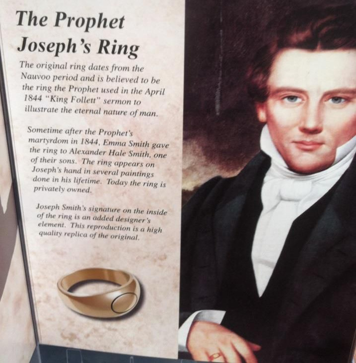 Late in 1839 when Joseph was preaching in Philadelphia,[5] Joseph went to a jeweler with two requests. One request was to repair the stone in the ring, and the other was to create a similar replica of the ring that he could wear every day without fear of losing or breaking something precious.