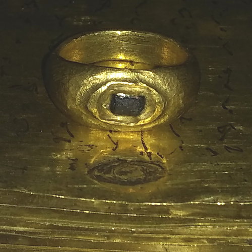 The appearance of the ring was that it was clearly hand made. Moreover, the gold appeared also to be about 18 karat (75%) gold, much like the plates themselves. I sensed that it was indeed an ancient sacred treasure!