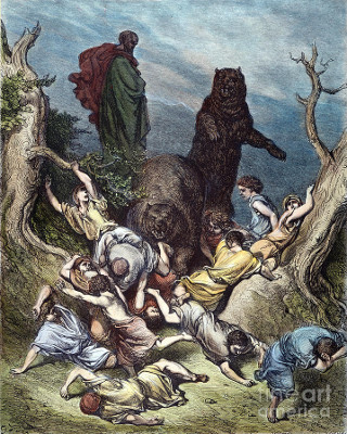 Elisha was bald and one day some youth publicly teased him about it. He cursed them in the name of the Lord, and two she bears came out of the woods and mauled 42 of them (2 Kings 2:23-24). Now why was that story included in the account being written by Ezra, and why would he include the detail that they were she bears? And just who was it who noticed that detail? If you saw bears mauling a bunch of youth, would you be concerned about whether or not they were female bears? And would have known how to tell the difference? This event was indeed unique among events in the lives of the prophets, but for some reason this story is not told much in children's Sunday School classes!