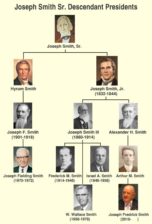 Here is a chart of the lineal succession of descendants of Joseph Smith, Sr., to be Church Presidents. Not everyone included in the chart was a president. Those who were have their years of presiding listed below their names.