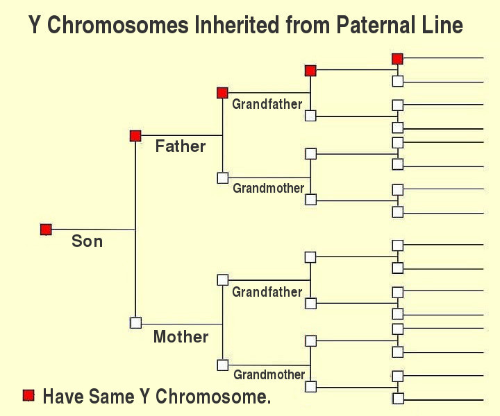 Combining that fact with the laws of tribal membership leads to a simple conclusion that all men who are prophesied to be of the seed (including the Y chromosome) of one of the twelve patriarchs of the tribes of Israel must be born of a line where all of the fathers were also of that tribe (see Figure 2). On the other hand, it is not the same for the X chromosome, because a woman inherits her two X chromosomes from both parents (click on Figure 2 to see X chromosome ancestors).
