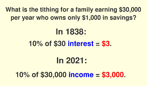 But, wait, there is a huge interpretation of one word given. We are told that the word "interest" should now be understood as "income". Why is that? Has the word changed in meaning since 1838? After all, there is a huge difference today in what a person considers to be "interest" earned in a year versus their "income" earned for a year. Let us now look at the original interpretation of the law of tithing.