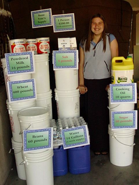 Author's note: It is interesting that this strong reemphasis on the basics of food storage as opposed to the food that we normally eat helps to balance the advise to store a year's supply of food with the advise to save a financial reserve and stay out of debt. The current cost of this basic year's supply for one person is estimated at only $158 (wheat $72, beans $25, milk $21, cooking oil $12, sugar $23, salt $5) not including the cost of storage cans or buckets. The cost including buckets is about $200 per person.