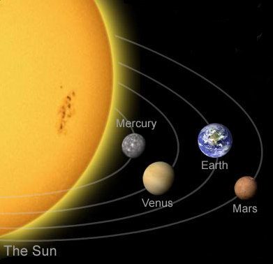 The orbit of Mars and of planets even further from the sun appear very different from those of Venus and Mercury, which both have sacred calendars associated with them. Looking at the standard picture of the solar system as shown in Figure 1, all is very orderly, and one might expect the planets to appears to travel in smooth arcs across the sky. But that illustration is a view from space where both the sun and stars appear to be in fixed positions and the planets are all moving counter-clockwise around the sun.