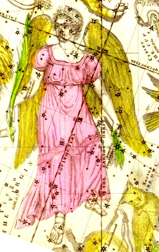 There is another very important constellation which was either lost to the Greeks or changed by them. There is a tradition about how one Greek astronomer created a constellation in honor of Queen Bernice. He named it Bernice's Hair (Coma Berenices). It is not on other ancient lists such as that of the Persians. The location of Bernice's Hair is near the Virgin. In the Egyptian star map at the temple at Dendera, the constellation is shown as a queen (usually identified with Isis) holding an infant god (Horus).
