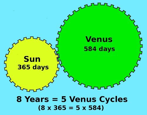 Of the ten sacred calendars discussed here, only two appear to be totally independent of each other. Those two are the (Perpetual) Hebrew and the Venus. The first is tracking the moon and sun, and is also tied to the week. The other is tracking Venus and is tied to the trecena. Thus any day on the Hebrew Calendar can fall on any day on the Venus Calendar. In the case of the Resurrection discussed above, Easter on the Hebrew Calendar can fall on any of 585 different days on the Venus calendar. Therefore, on the average, the Hebrew Easter only falls on the Venus day 1 Resurrection about once in 585 years.
