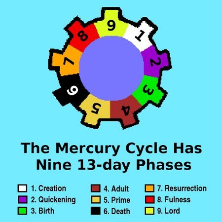 The description which follows applies both to the Mercury Calendar and also the Uniform Mercury Calendar. The only difference between them is that about every 3.7 years (11 or 12 Mercury Cycles) the Mercury Calendar skips one trecena in order to actually track the real planet through its phases.