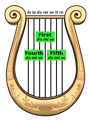 Long ago someone got the idea of putting two strings on an instrument. The first can be tuned to any do note of choice, and the second to its so note. Now whenever the first string is plucked, not only will a so note be heard as a harmonic, but it will also cause the so string to vibrate slightly. If the two are plucked together, the sound is very pleasing. That locks in so as a desired note on a scale.