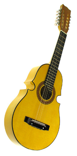 Secondly, it needs eight strings. If it weren't for that, a regular guitar could be a candidate. There are eight-string guitars, but they are mostly electric. But one possibility is the Puerto Rican Guitar (See Figure 11). It has ten strings. They are arranged in five pairs but they should be easy to separate.