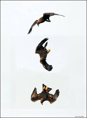 The diving eagle then banked hard left in what had to be a 9G climbing turn, using the energy it had accumulated in the dive, and hit crow #2 less than two seconds later. Another crow dead.