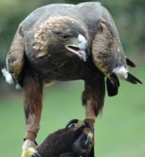 I went out to plant corn for a bit, to finish a field before tomorrow morning and witnessed The Great Battle. A golden eagle -- big, with about a six-foot wingspan - flew right in front of the tractor. It was being chased by three crows that were continually dive bombing it and pecking at it. The crows do this because the eagles rob their nests when they find them.