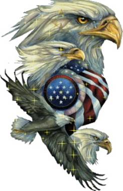 I happened to spot the eagle's mate hurtling down out of the sky at what appeared to be approximately Mach 1.5. Just before impact, the eagle on the ground took flight, (obviously a coordinated tactic; probably pre-briefed) and the three crows that were watching the grounded eagle also took flight -- thinking they were going to get in some more pecking on the big bird.