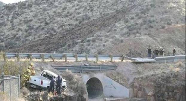 The pick-up was traveling about 75 mph from right to left when it crashed through the guardrail.