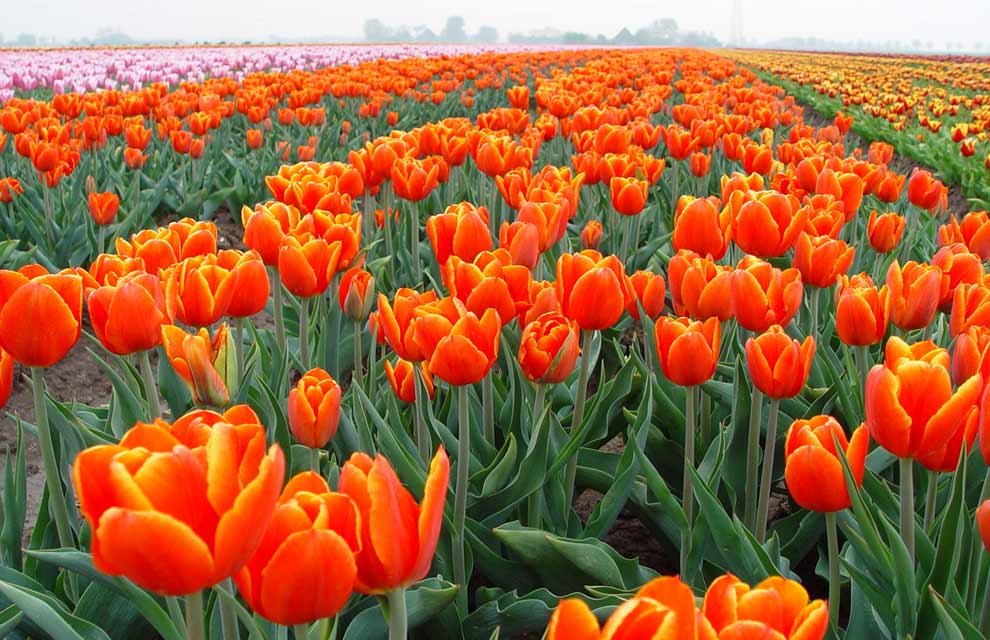 In springtime, the lowland area by the North Sea is carpeted with fields of gladioli, hyacinths, lilies, daffodils, crocuses... and, of course, tulips.