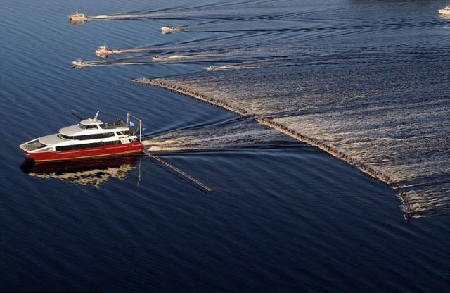 One boat and 145 water-skiers