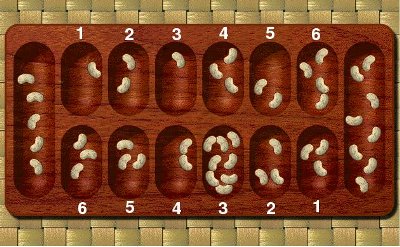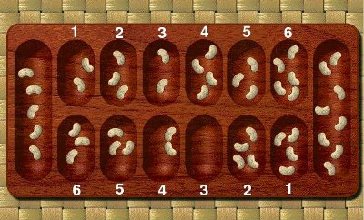 1. The game usually begins with four seeds in each pit. More seeds can cause the game to last too long.