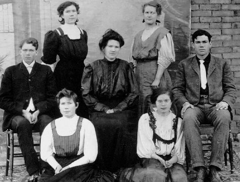 My sister's health gradually improved. She was now able to comb her hair and walk a few steps without help. In April we moved to St. George, on our way to Mexico, as Father had decided that the climate, the social life included, was perfect to rear his family. After six weeks of weary traveling on the burning deserts of Utah and Arizona, we arrived at Naco, Arizona, a little town bordering Mexico. A railraod track divided the town Naco, Arizona from the town Juarez, Mexico. Here we learned of Melvina's death, Aunt Jane's little girl, her third child to die. Morgan and Vernon, her two oldest, passed away in infancy. Employment was good in Naco in the form of freighting and as the family needed cash. My brother, David began freighting coke from Naco to the Canninea Mines in Mexico, and metals from the Canninea Mines back to Naco. Mother ran a small laundry with my sister, Artie, sometimes Wendall and myself as distributors and collectors.