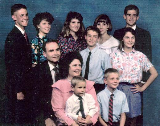 Back L-R: Carl, Cindy, Pamela Francis, Monica, and David Center: Calvin & Ann (holding Tyler), Kenneth, and Karen Tyler and Brian in front Missionaries are: Carl to Czechoslovakia, Monica to Salt Lake Visitor Center, David to Texas, Kenneth to Anaheim, California, and Brian to the Amazon of Brazil (Tyler is not yet 19) Calvin fulfilled a mission to Germany