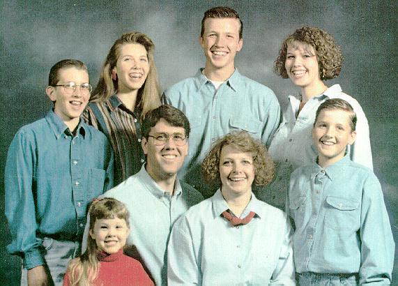 L-R, back: James, Laura, Aaron, Kami Front: Amanda, David & Gail, and Jared David met Gail at Ricks College.