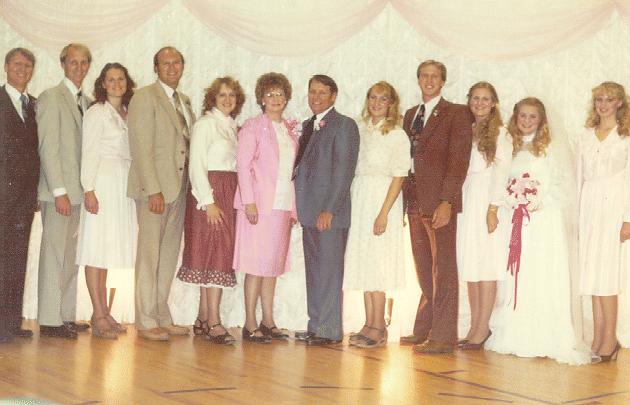 Martha's wedding. Orem, Utah, USA. Owen is the son of Wayne Stout. L-R: Lynn D., Kirtland, Shauna (McConkie), Wayne, Kari ( Zeeman), Colleen Engh,& Owen, Jayne (McPherson), Paul, Andrea (Pederson), Martha (Okerlund), and Janna (Morrell). A wonderful musical family! Colleen is a great pianist and Owen in a great singer! He has played the saw many times for special numbers on many occasions. The Clarks (his mother's family) taught him how to play the saw. It sounds like a lovely violin! A pioneer tradition still exists.